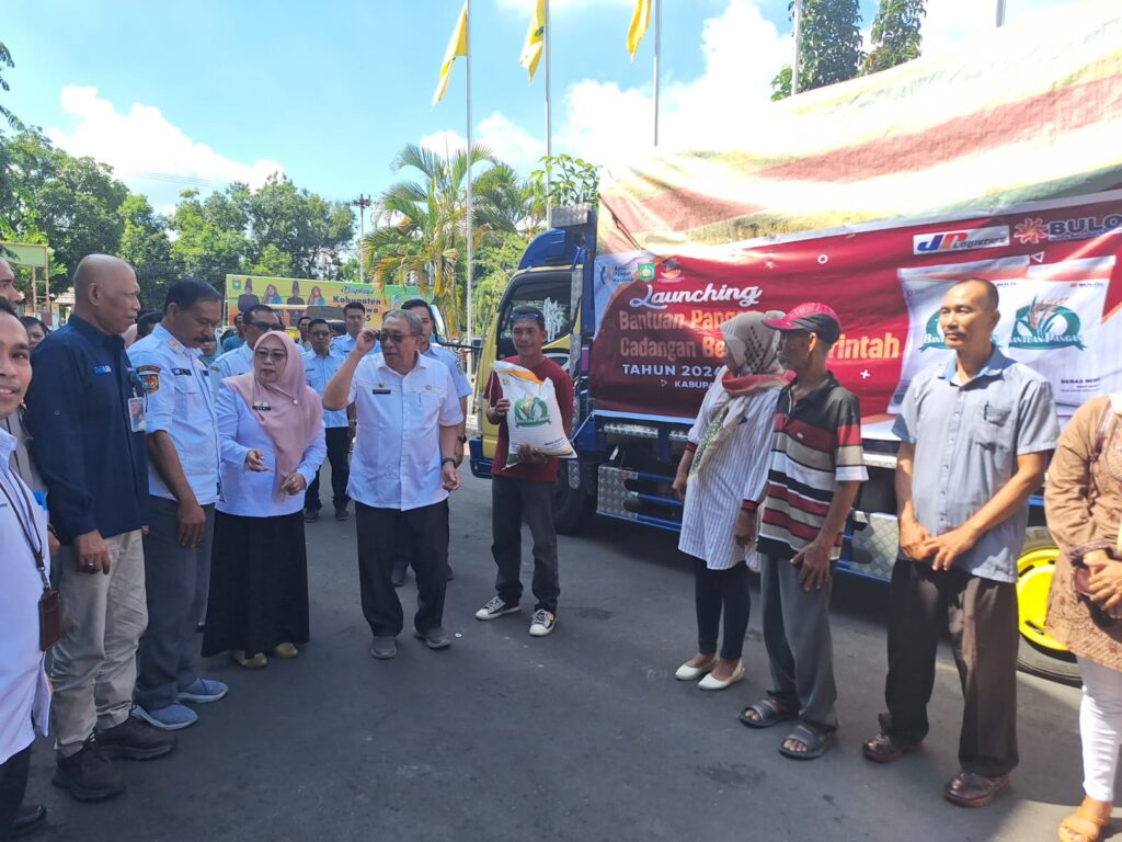Bupati Sumbawa, Drs. H. Mahmud Abdullah secara resmi meluncurkan penyaluran Bantuan Pangan Cadangan Beras Pemerintah (CBP) Tahun 2024, Rabu, 31 Januari 2024 pagi di Halaman Kantor Bupati.