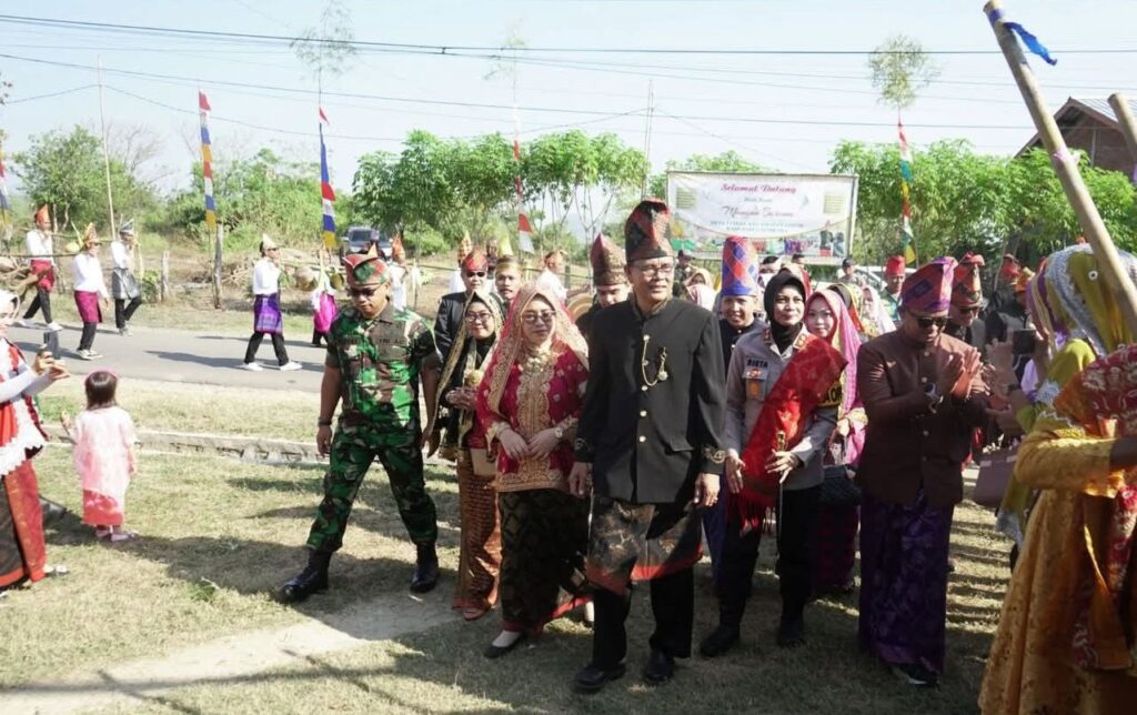 Bupati Sumbawa, Ir. H. Syarafuddin Jarot, M.P secara resmi membuka acara tradisi Mangan Barema yang digelar di Desa Tatede, Kecamatan Lopok, pada Kamis pagi (24/07/2025). Kegiatan ini diawali dengan Pawai Junyung Pasaji, dimana para ibu rumah tangga membawa berbagai jenis makanan dari rumah masing-masing menuju lokasi acara Mangan Barema.