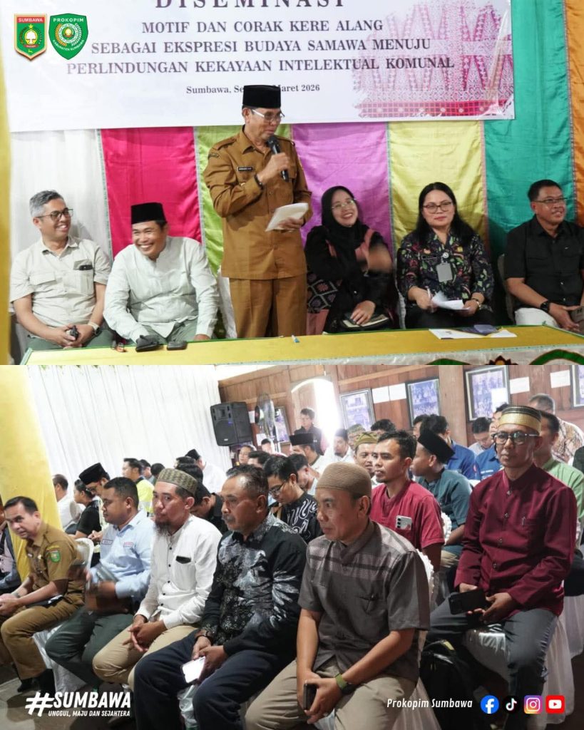 Bupati Sumbawa, Ir. H. Syarafuddin Jarot, M.P., membuka kegiatan Diseminasi Motif dan Corak Kere Alang sebagai Ekspresi Budaya Tradisional Menuju Perlindungan Kekayaan Intelektual Komunal (KIK) yang diinisiasi Universitas Samawa (UNSA) bekerja sama dengan PT Amman Mineral Nusa Tenggara (AMNT), di Istana Dalam Loka, Sumbawa Besar, Senin, 2 Maret 2026.