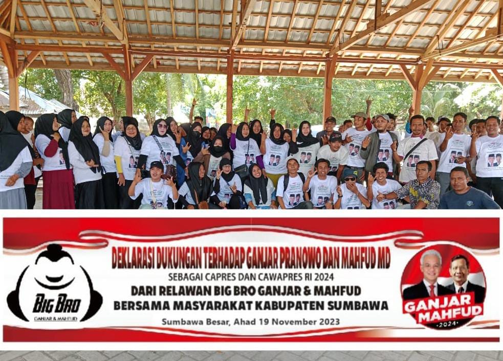 Sebagai dukungan nyata, Ratusan Relawan Big Bro Comunity Kabupaten Sumbawa mendeklarasikan dukungannya kepada Ganjar – Mahfud yang dipusatkan di Pantai Saliper Ate, Labuhan Sumbawa. Relawan Big Bro Comunity Kabupaten Sumbawa yang dipimpin oleh Indermawan Bogel ini adalah cabang dari relawan Big Bro Comunity yang ada di provinsi dan pusat.