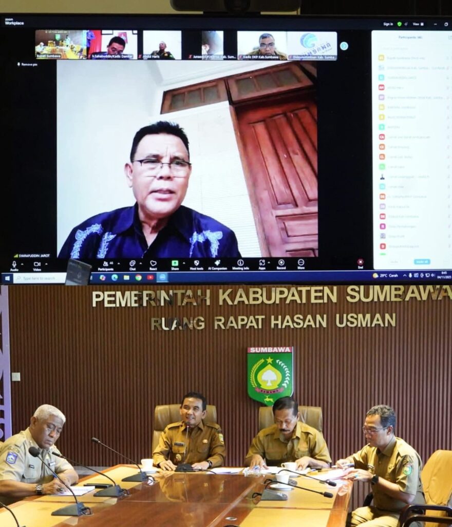 Wakil Bupati Sumbawa, Drs. H. Mohamad Ansori, memimpin rapat evaluasi kinerja Pemerintah Daerah Kabupaten Sumbawa yang digelar secara rutin setiap hari Selasa, bersama seluruh perangkat daerah melalui zoom meeting.
